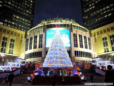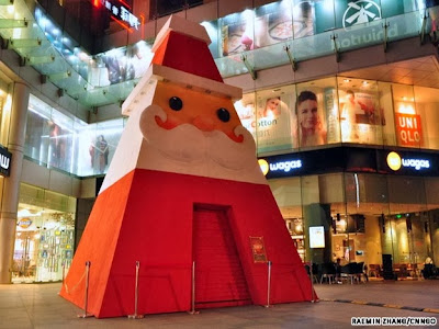Άγιος Βασίλης με τη μορφή χριστουγεννιάτικου δέντρου σε σχήμα πυραμίδας στολίζει την πλατεία Xinmei Union square.